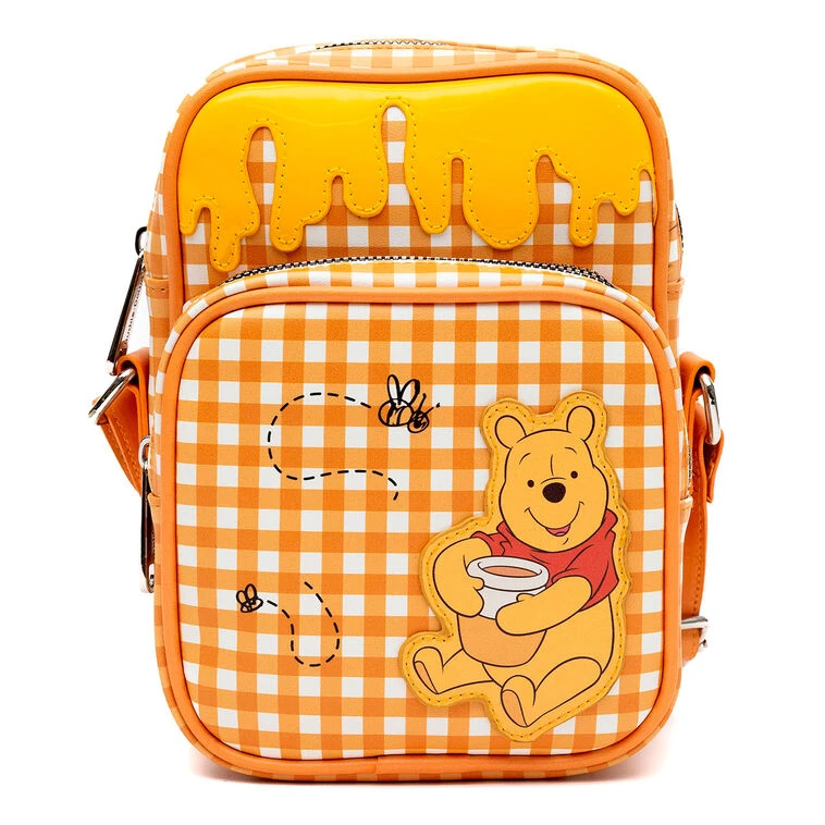 - Buckle-Down faux leather crossbody bag features Winnie the Pooh on a yellow gingham bag.