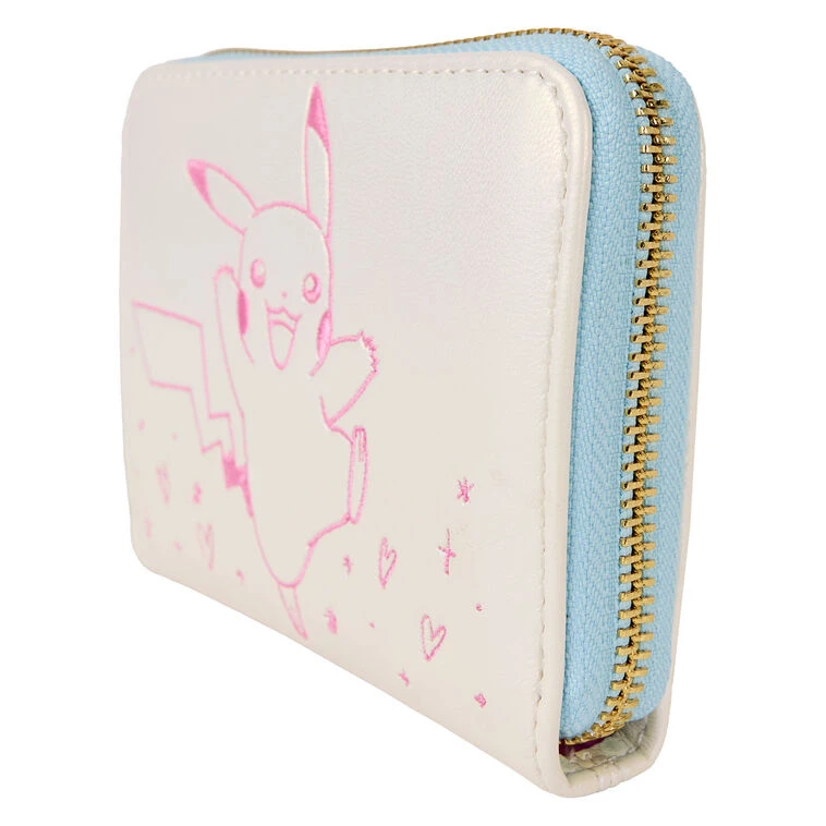 Zip-around closure. Interior features credit card slips, ID window and zip pocket.