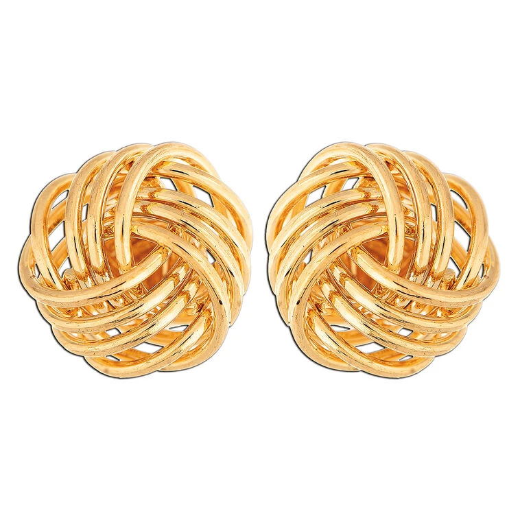 Add polish and style to any look with these pretty gold-tone stud earrings. Rings of gold wire twisted into a knot make an elegant statement with both colorful and monochromatic ensembles. Versatile studs make a lovely gift for mom or any fashion forward friend.