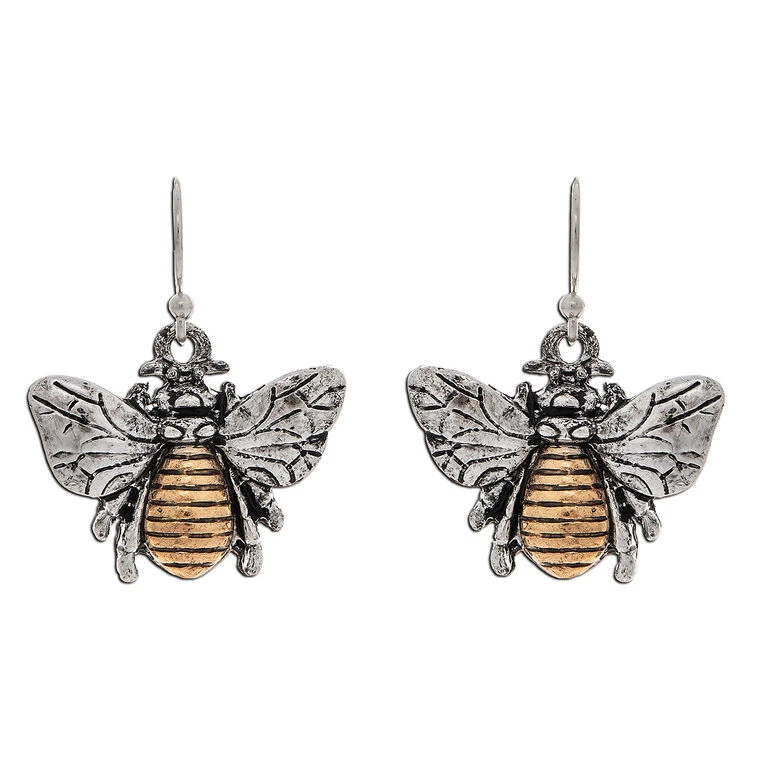 Bring a buzz of excitement to your spring wardrobe with this whimsical pair of gold- and silver-toned drop earrings. Bee earrings dangle from silver metal ear wires and are sure to make a spring splash. They make a sweet gift for nature and garden lovers and will draw notice like a bee to flowers.